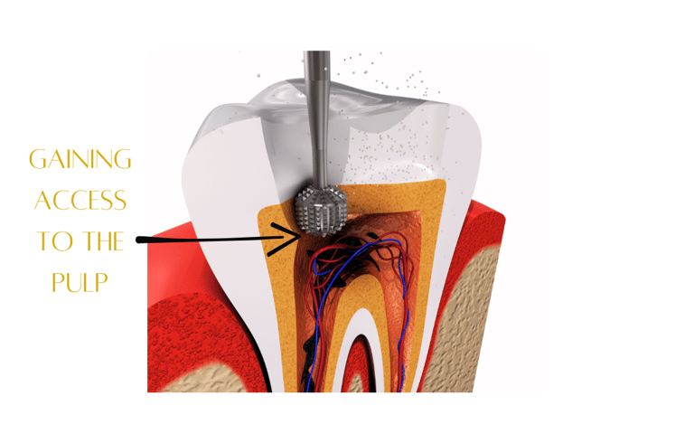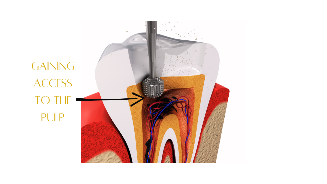Once the area is numb, the dentist will create a small opening in the top of the tooth. This allows access to the pulp (the soft tissue inside the tooth), where the infection or damage is located.